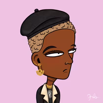Collection Depressed Citizens Artist Juls Description ART. No team, no project, no future. Depressed Citizens is an urban & existential Art expression on Ordinals. In a parallel universe, "THEI" control us. DC unites against toxic society, encouraging critical thinking. 100% hand made collection that took Juls more than 6 months of daily work. Name Citizen#2674 Origin African descendant Gender Woman Necklace Pre-Columbian necklace Hat Black beret Mustache Beard No beard Glasses No Glasses Earrings Ball earrings trio Hair Style Short tight curls Clothes BLM women shirt Tattoo No Tattoo Star Background Without stars