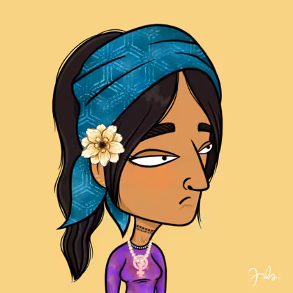 Collection Depressed Citizens Artist Juls Description ART. No team, no project, no future. Depressed Citizens is an urban & existential Art expression on Ordinals. In a parallel universe, "THEI" control us. DC unites against toxic society, encouraging critical thinking. 100% hand made collection that took Juls more than 6 months of daily work. Name Citizen#48 Origin Asian & Pacific islander Gender Woman Necklace Choker Hat Printed head scarf Mustache Beard No beard Glasses No Glasses Earrings Ball earrings trio Hair Style High ponytail Clothes Women power long-sleeve shirt Tattoo No Tattoo Star Background Without stars